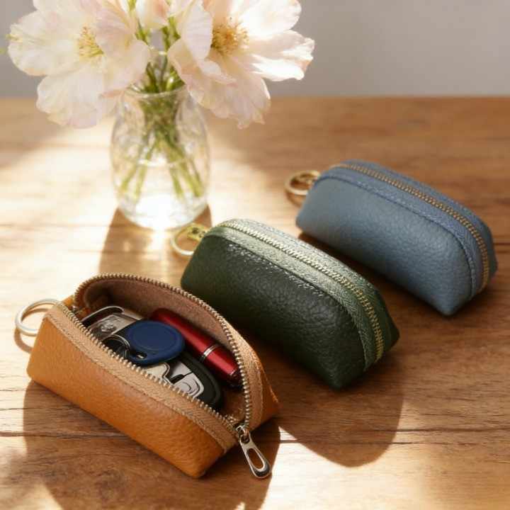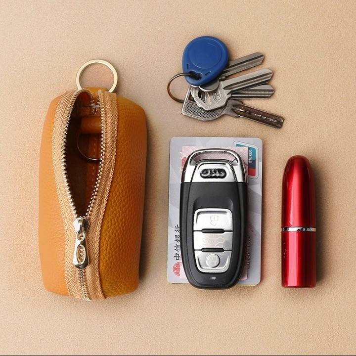 Étuis à clés de voiture en cuir PU de haute qualité, motif litchi, portables, durables, grande capacité, fermeture éclair, pochette de rangement quotidienne
