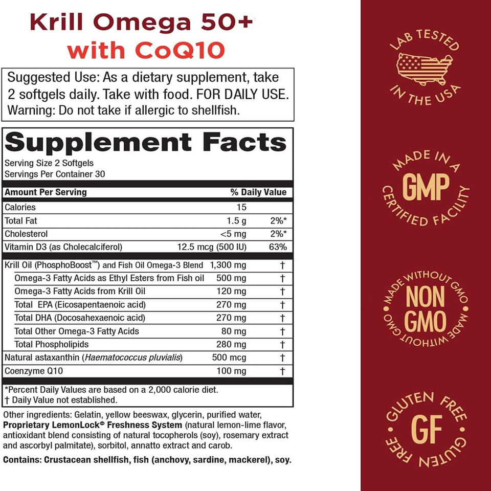 Huile de krill et CoQ10 de haute qualité en capsules molles, marque privée, pour stimuler l'immunité, soutenir la fonction cognitive et favoriser la santé des os et des articulations.