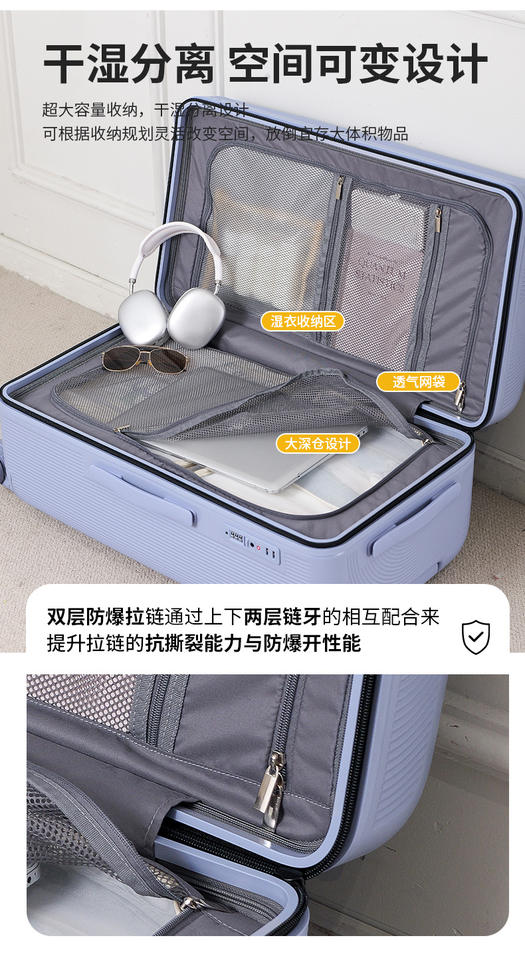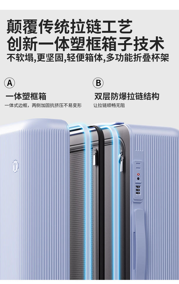 Valise à roulettes de grande capacité, élégante et de haute qualité, exportée au Japon et en Corée, avec fermeture éclair anti-explosion