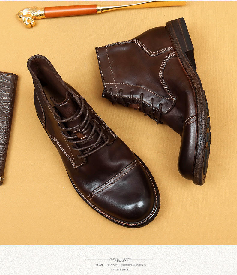 Bottes Chelsea montantes pour hommes en cuir véritable, à semelle épaisse, antidérapantes, style britannique, pour l'hiver, décontractées et professionnelles, de haute qualité