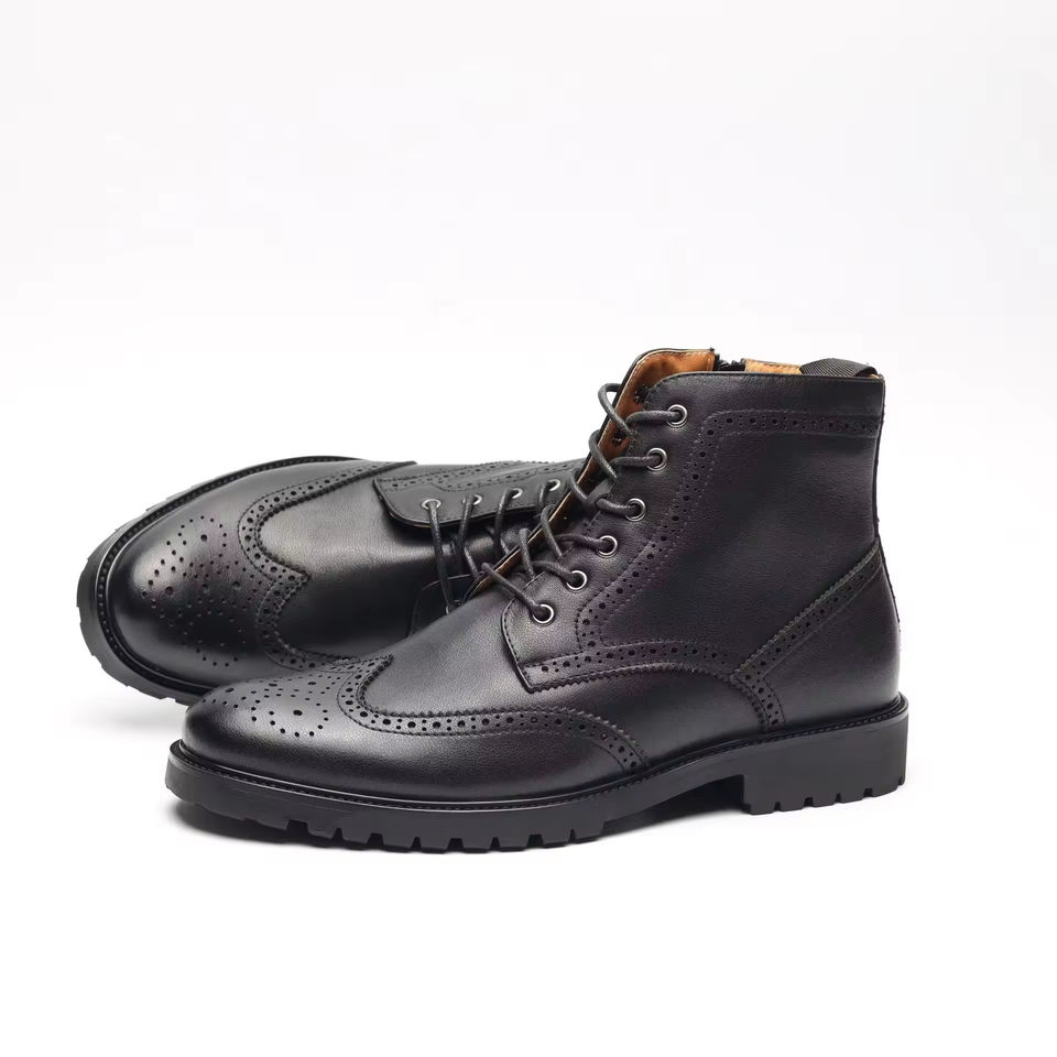 Bottes à lacets pour hommes en cuir véritable, de haute qualité, à semelle épaisse, avec doublure polaire pour l'hiver, antidérapantes et désodorisantes, style britannique