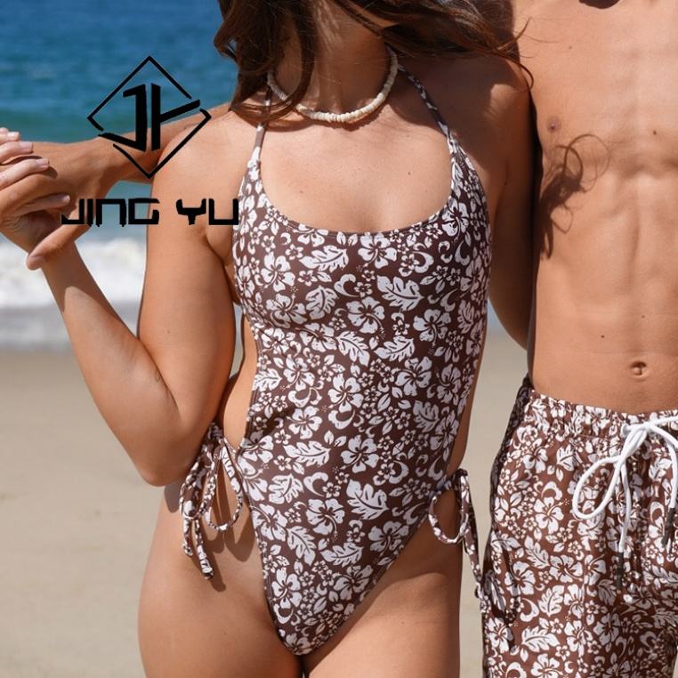 Maillot de bain une pièce de haute qualité à imprimé vintage avec découpe latérale, en nylon texturé et durable