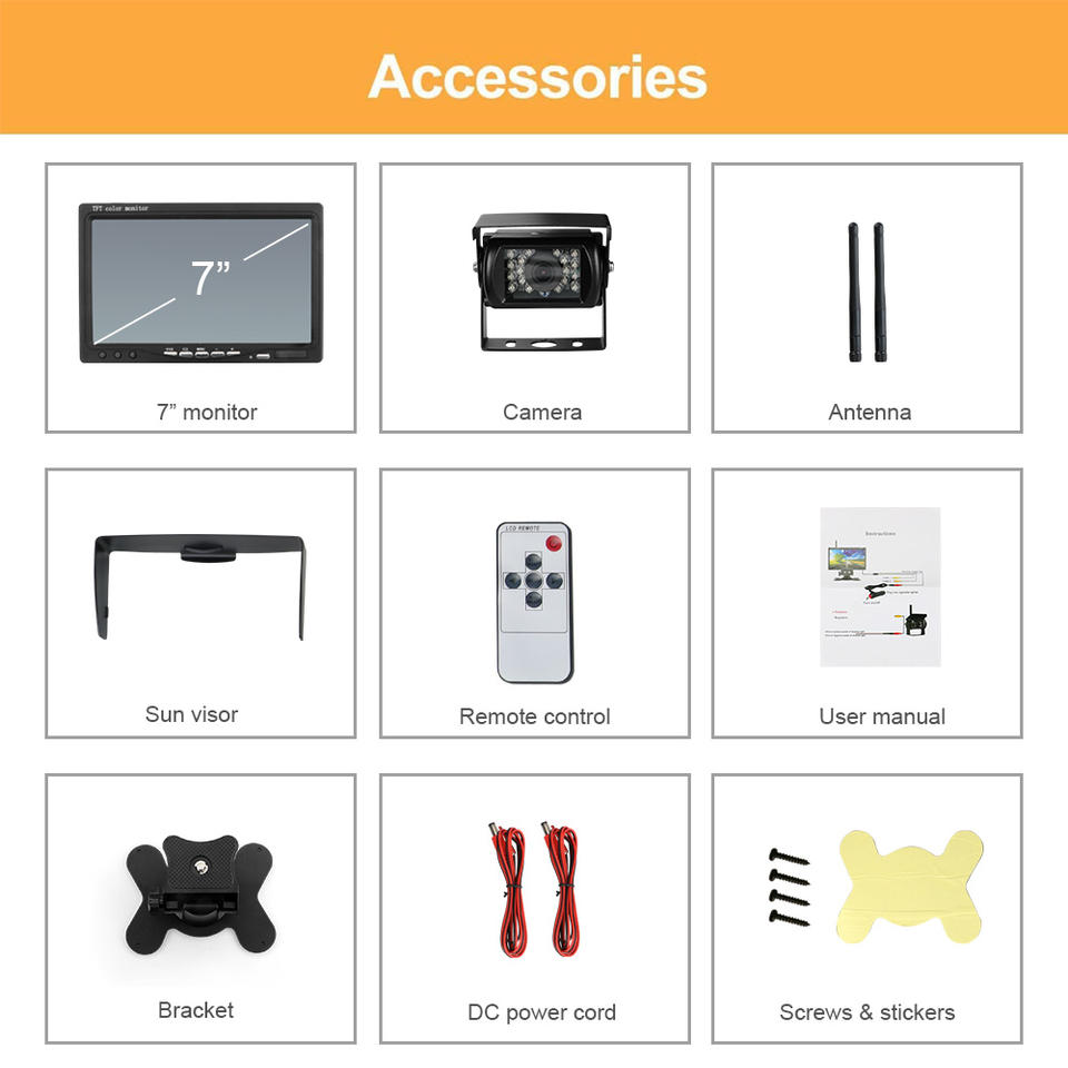 Kit de caméra de recul sans fil de haute qualité, sans écran clignotant, moniteur LCD 7 pouces, caméra de recul étanche