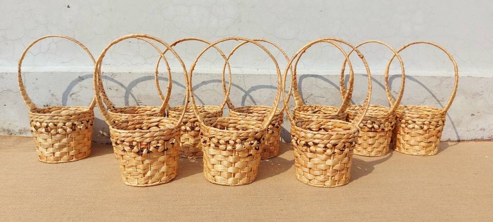 Panier de rangement pour linge en paille jacinthe d'eau écologique de haute qualité avec poignée