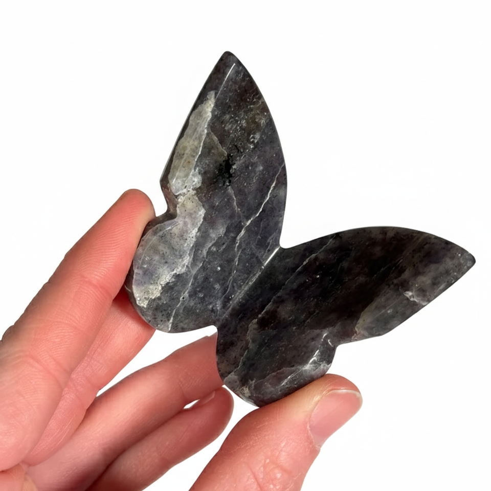 Papillon volant en cristal de haute qualité, iolite bleue avec ailes en pierre de guérison, papillon sculpté 3D et décoration d'intérieur