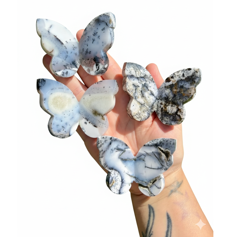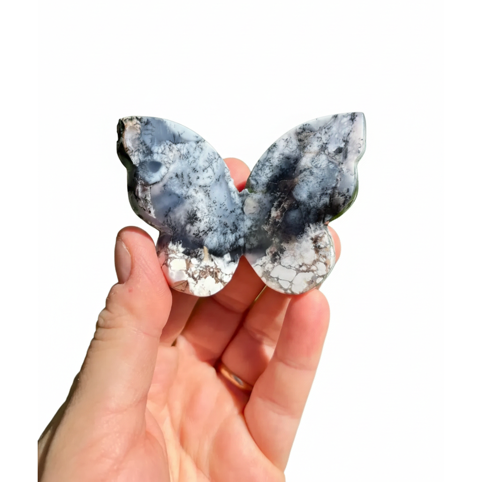 Papillon volant en cristal d'opale dendritique de haute qualité, pierre de guérison, ailes sculptées en 3D, décoration intérieure, grossiste