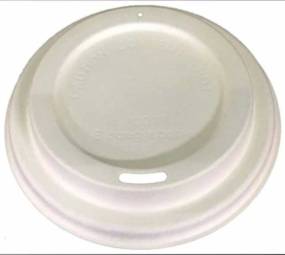 Fournisseur de couvercles jetables pour gobelets de 90 mm de diamètre, en bagasse de canne à sucre, biodégradable, compostable et respectueux de l'environnement.