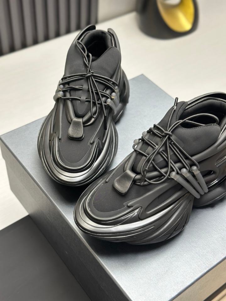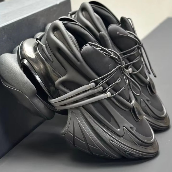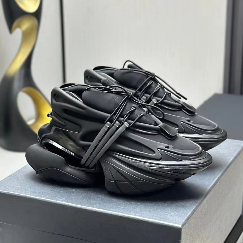 Chaussures de sport de luxe sur mesure pour hommes de haute qualité - Chaussures de marche décontractées épaisses Balmainn à semelle surélevée en cuir véritable