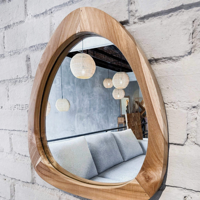 Miroir en teck massif de haute qualité, forme unique, finition naturelle, artisanal