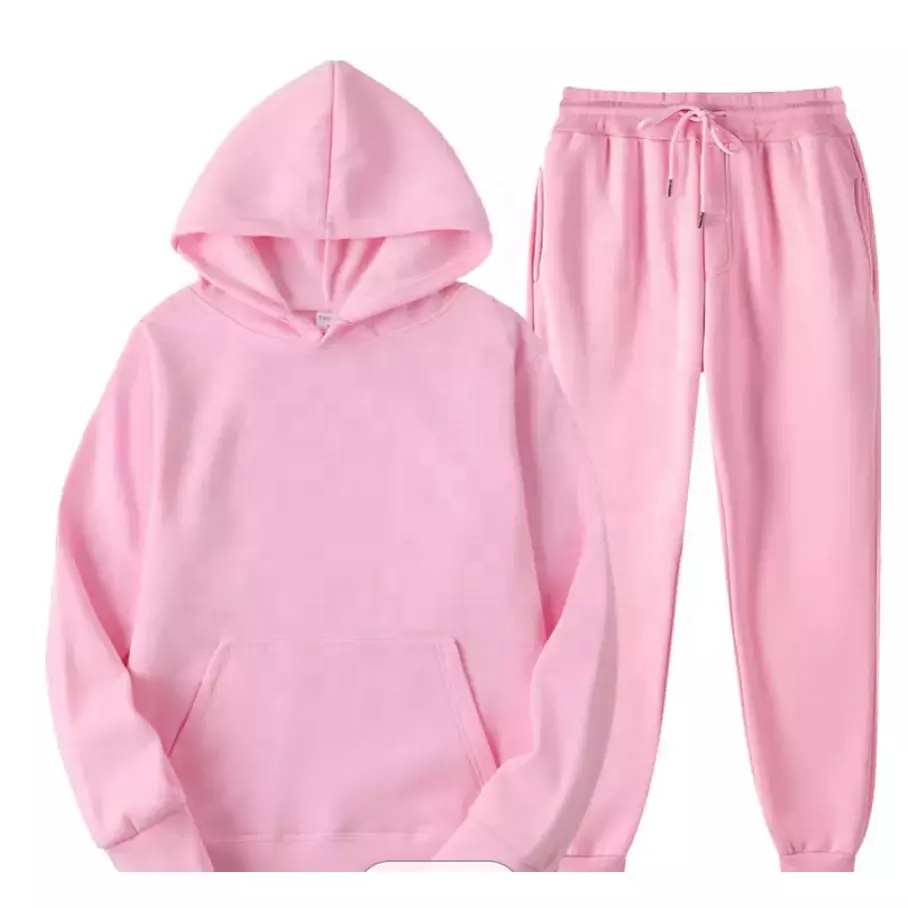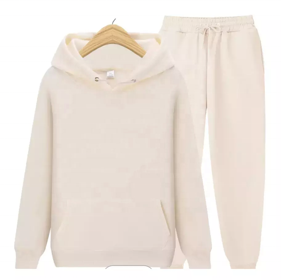 Ensemble sweat à capuche et pantalon de survêtement en tricot uni imprimé par transfert thermique de haute qualité pour l'hiver, en coton et polyester, design personnalisé unisexe