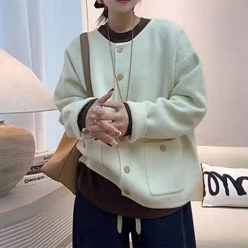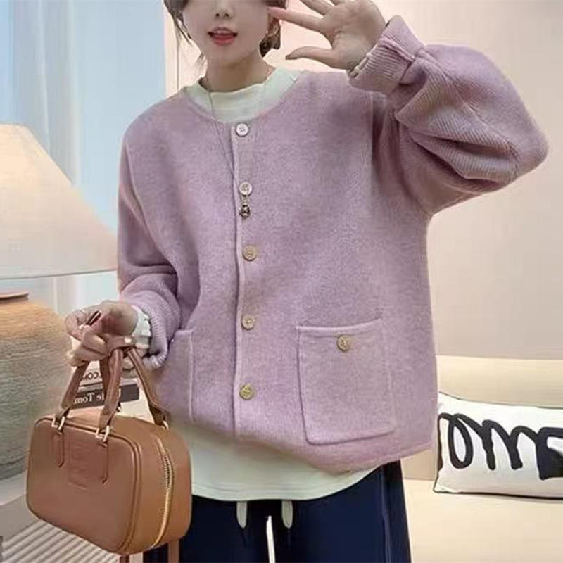 High-quality women's knitted sweater round neck single-breasted loose and slim, versatile sweater women's jacket