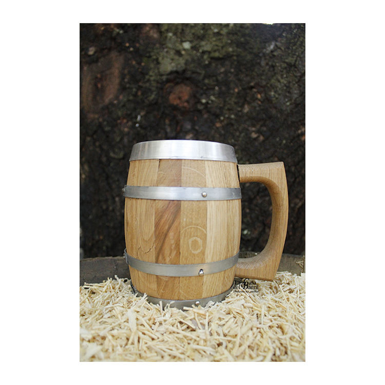 High Quality 500ml Brown Wooden Jar Vintage Style Galvanized Beer Barrel Two Rings Handle Handmade Black Rim Opener La Casa Del