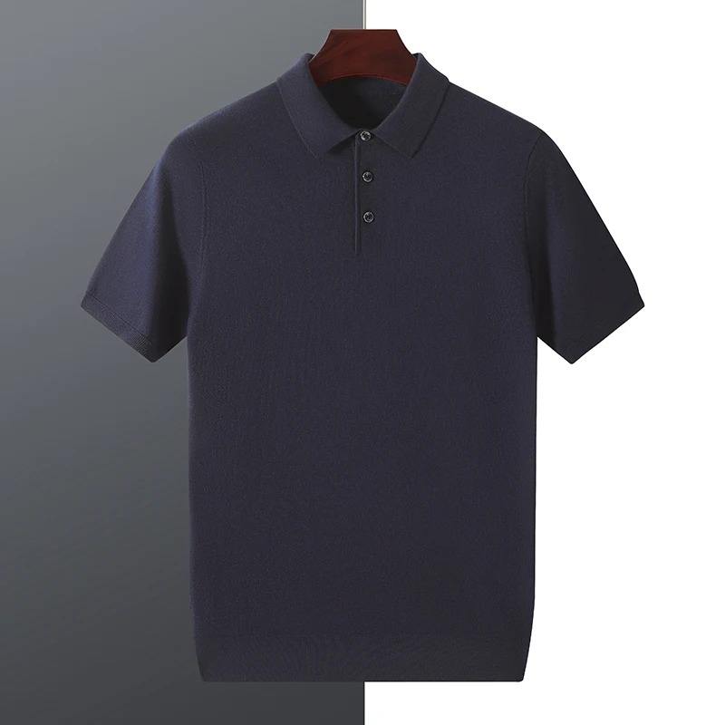 Haute qualité peigné filature pull laine hommes chandails été affaires polo pull mince à manches courtes tricoté T-shirt