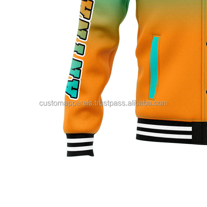 Veste universitaire en laine classique personnalisée équipes de lycée MCACVJ-113 Letterman col montant logo de broderie sur le devant Service OEM hommes