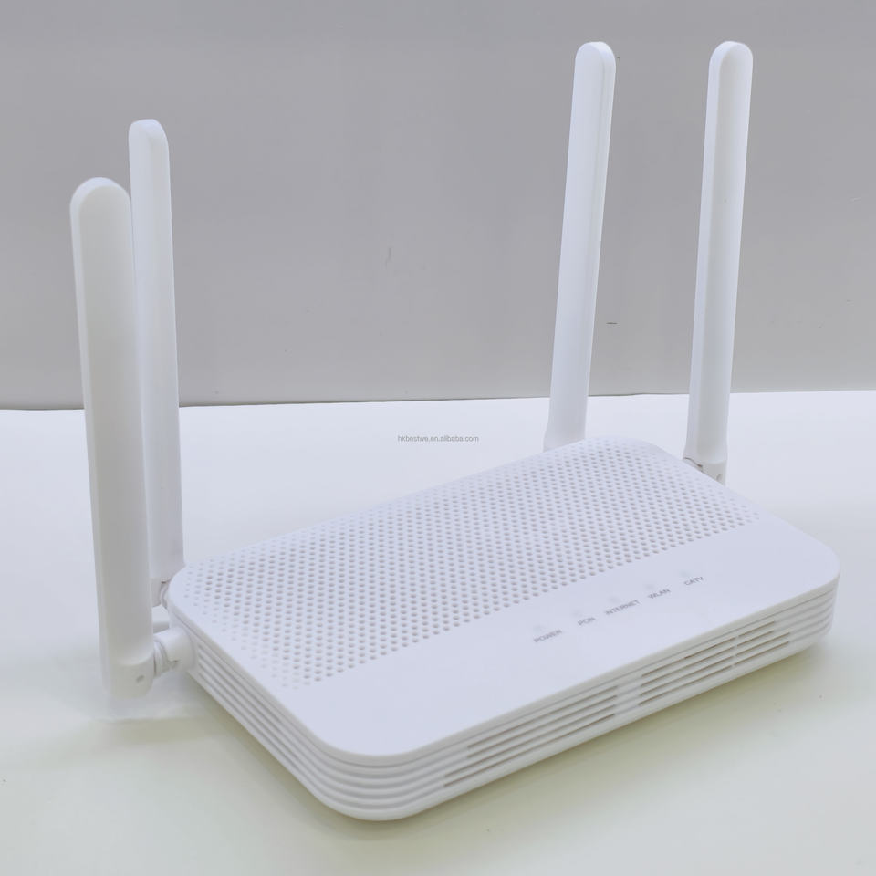 High-speed FTTH XPON ONU HTG5247W 4GE+1POTS+1USB+1CATV Support Remote Control 2.4G&5G Dual Band 1200Mbps WiFi5 2*5dBi Antennas