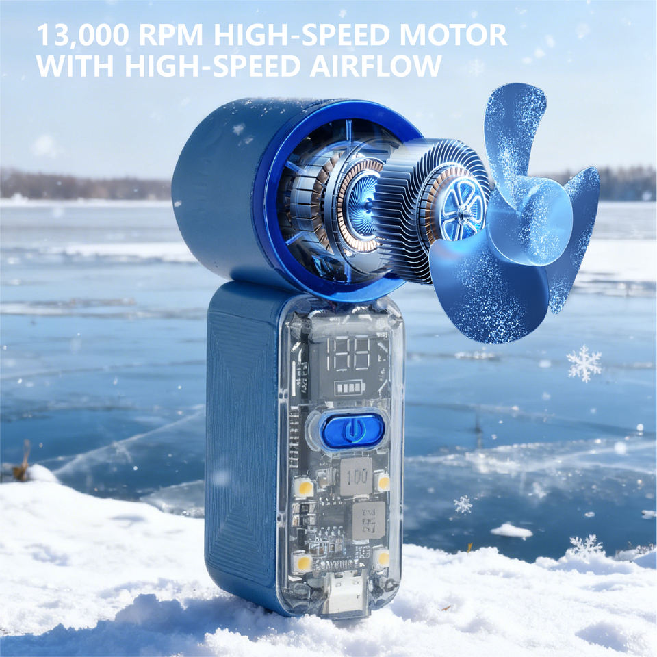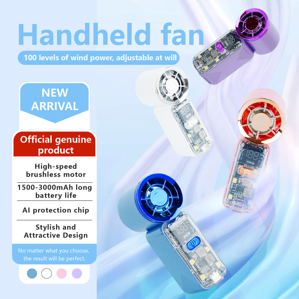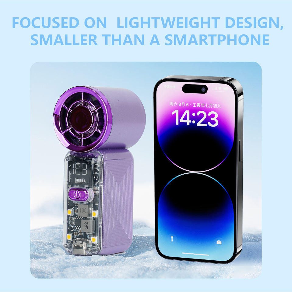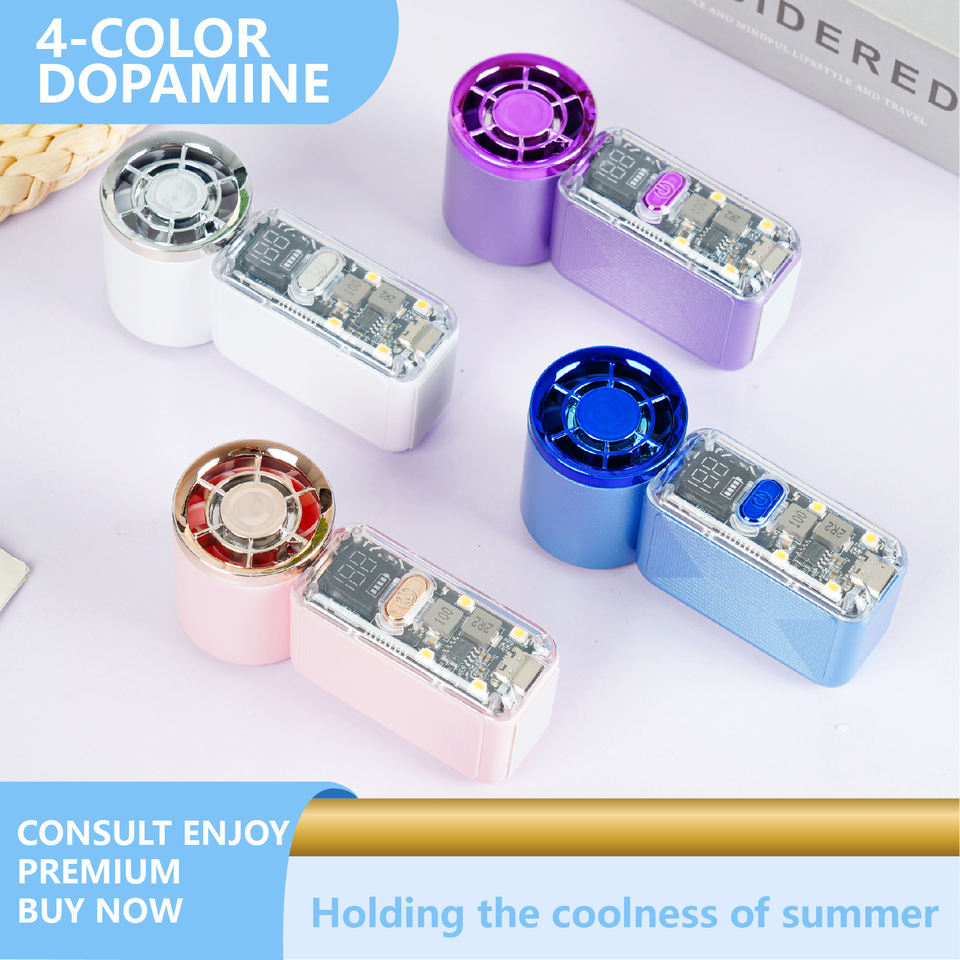 Ventilateur portable haute vitesse avec écran LED numérique et lumière, puissant, de poche, alimenté par batterie, pour voiture et extérieur, en plastique