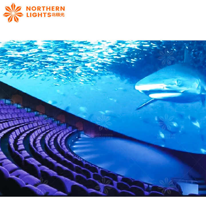 La haute technologie signifie un cinéma volant avec des films à écran dôme et des effets spéciaux en direct en temps réel