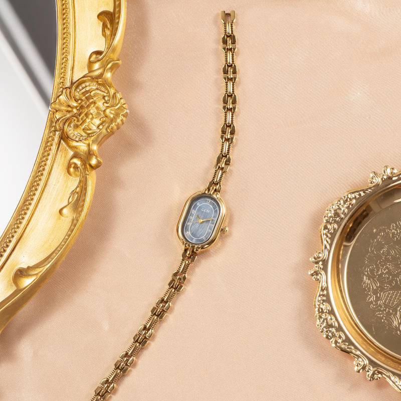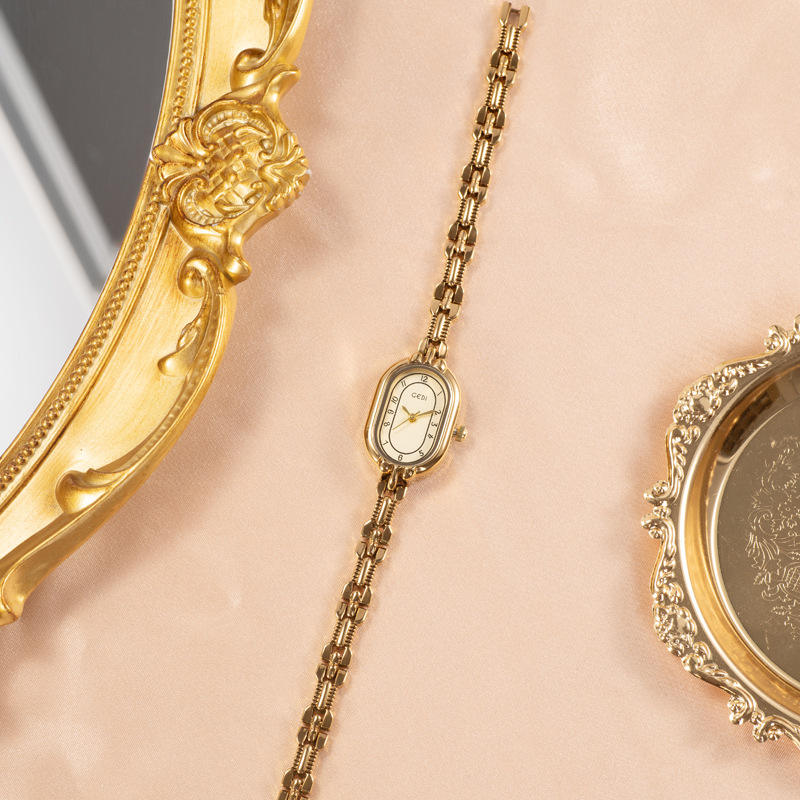 High-value women's watch vintage-style small gold oval bracelet fashionable quartz watch