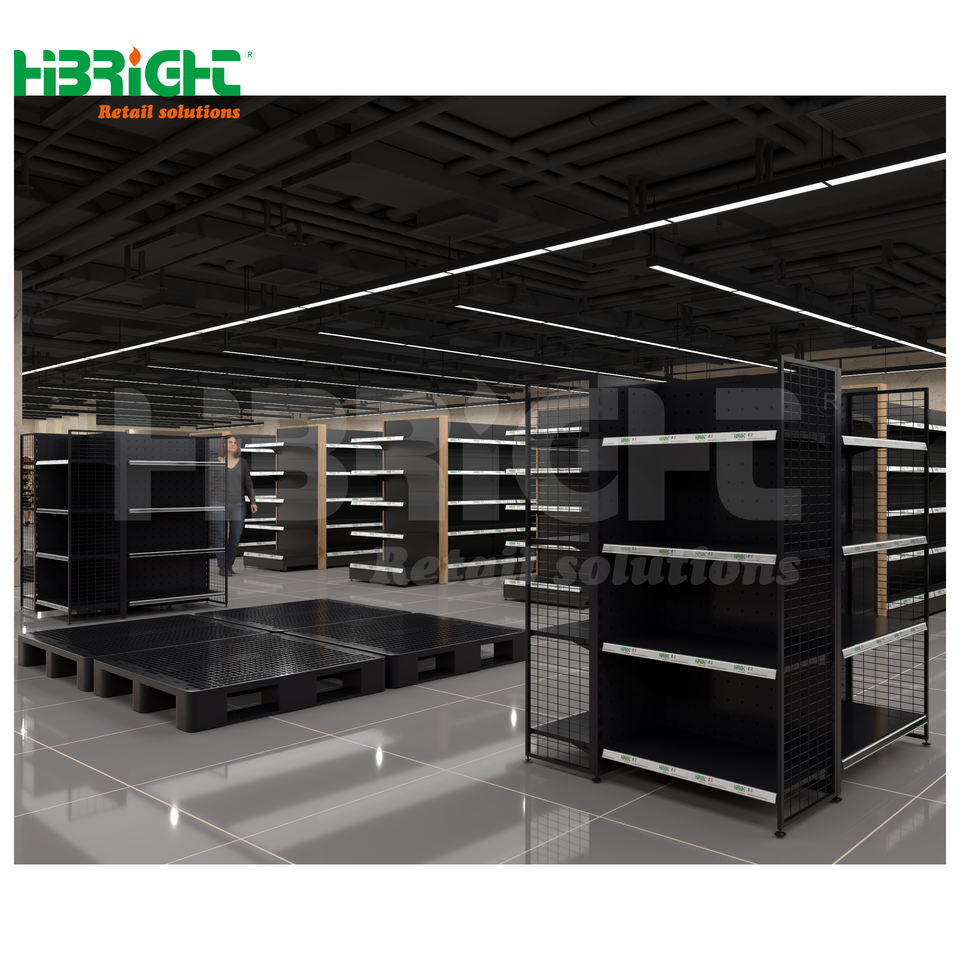 Highbright Étagères de supermarché en métal robuste personnalisées Étagère d'épicerie avec étiquette de prix Conception de mise en page élégante