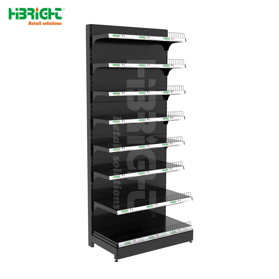Highbright Single-Sided Heavy-Duty Black Metallic Finish Supermarket Shelves Display Rack 5-Shelf Wall Mount New Design for Sale