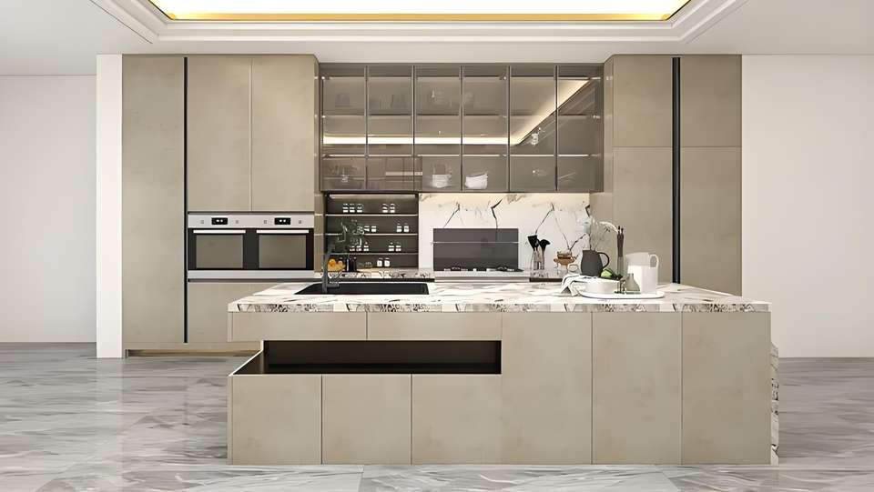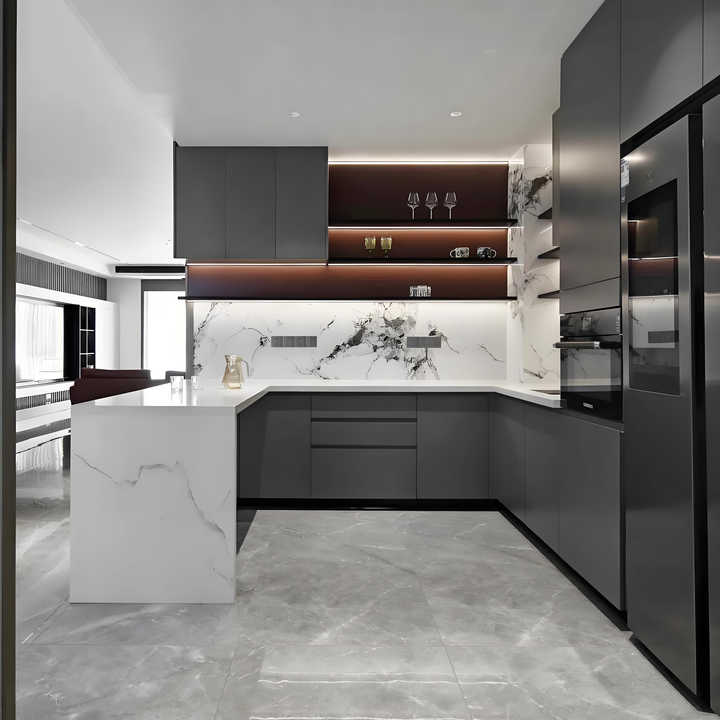 Armoire de cuisine noire haut de gamme Design de style moderne Île de luxe de Kichen Armoire de cuisine complète en bois