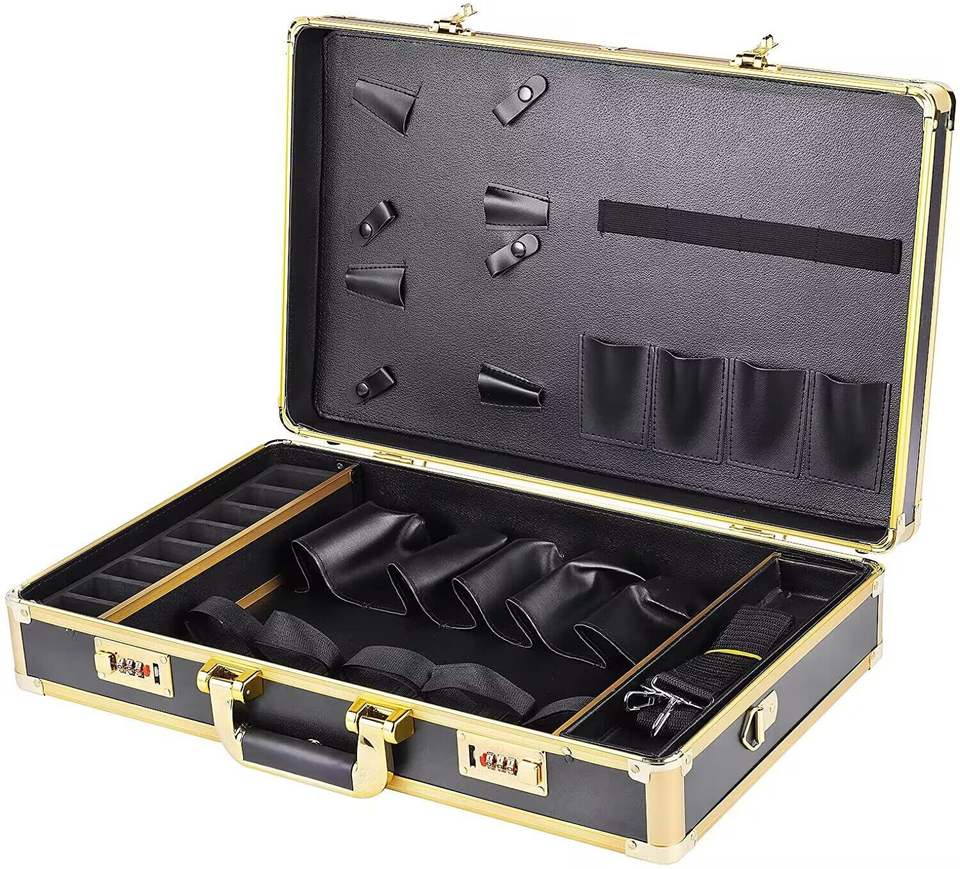 Mallette de barbier de qualité supérieure Logo noir mallette de barbier en aluminium de qualité supérieure Offre Spéciale valise de coiffeur de coiffeur
