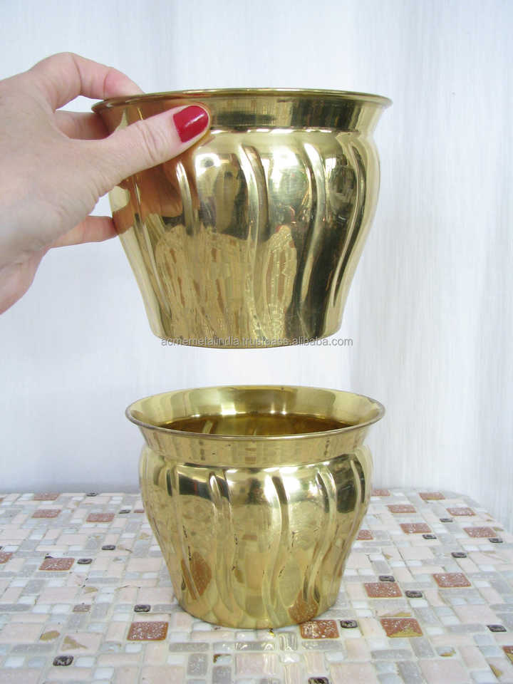 Jardinières d'intérieur en métal poli or de la plus haute qualité Ensemble de 2 jardinières de forme ronde en laiton massif de différentes tailles pour la décoration intérieure