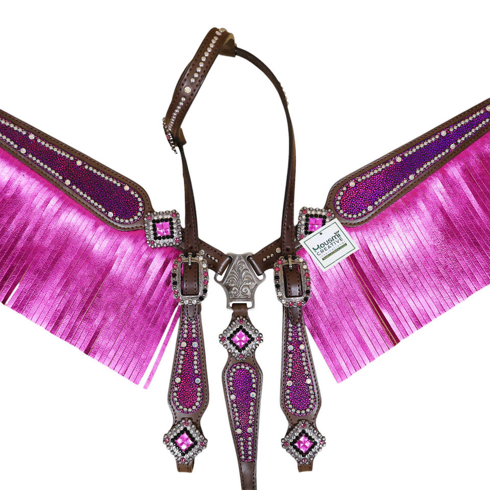 Western Horse One Ear Headstall & Metallic Fringe Breastplate SetProduct name