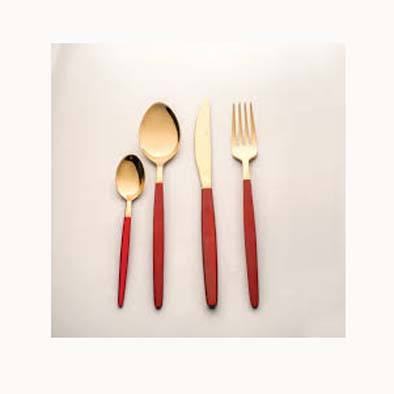 Plus haute qualité en acier inoxydable or miroir poli Long plat rouge poignée couverts mariage fourchette couteau et cuillère ensemble de couverts