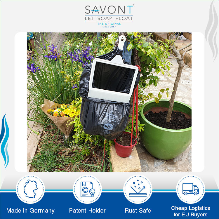 Conception brevetée et peu encombrante, installation facile, Prise sûre pour sacs poubelles, réutilisable