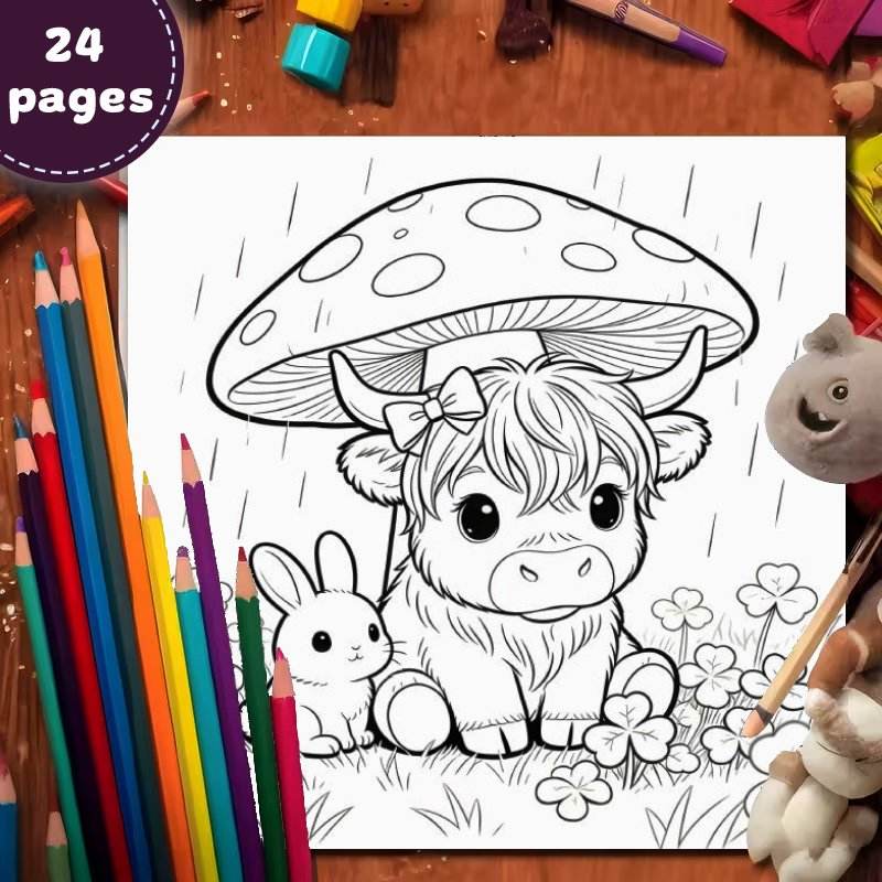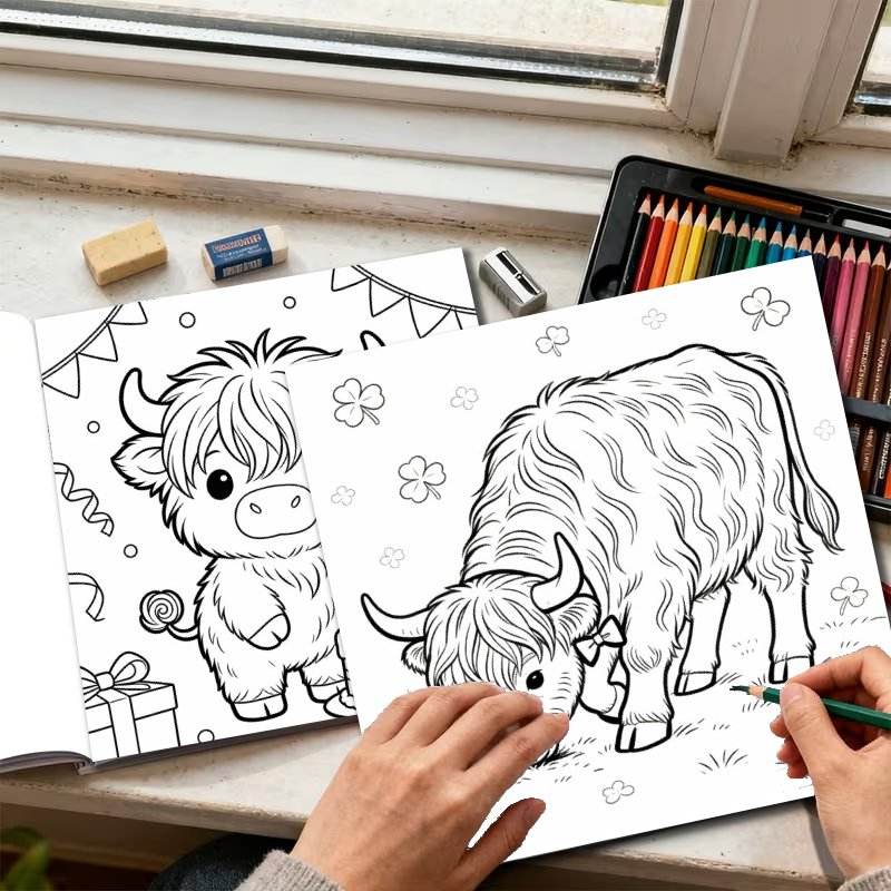 Carnet de coloriage Vache des Highlands pour adultes et enfants – Motifs adorables, anti-stress, cadeau idéal pour les amoureux des animaux de la ferme