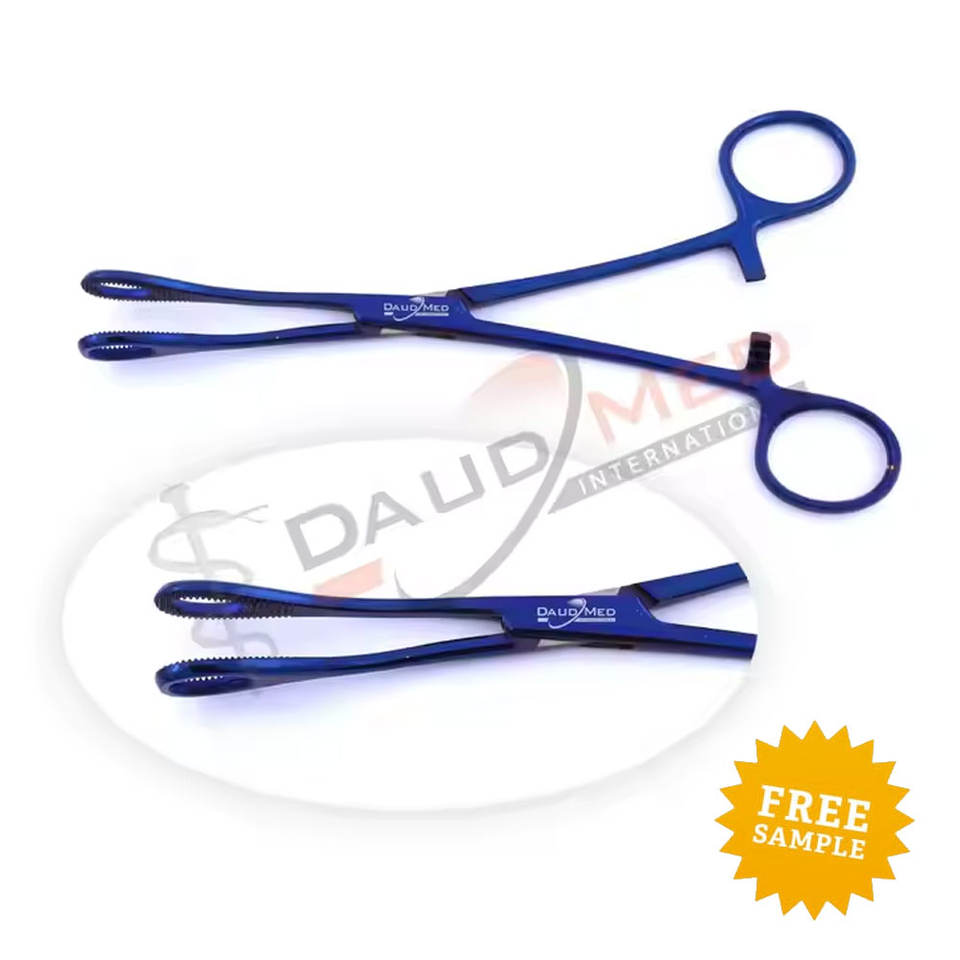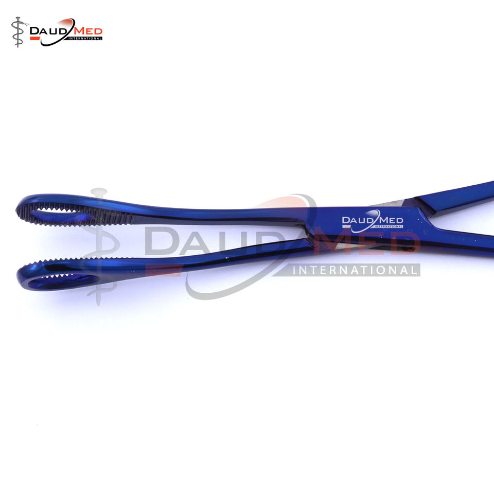 Pince éponge en acier inoxydable antidérapante de qualité Highland Dents imbriquées durables sans fente Instrument médical à revêtement bleu