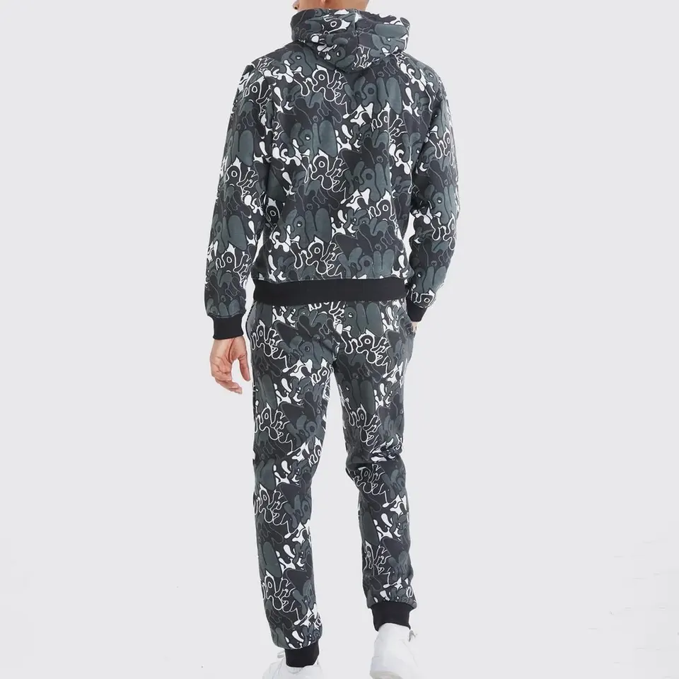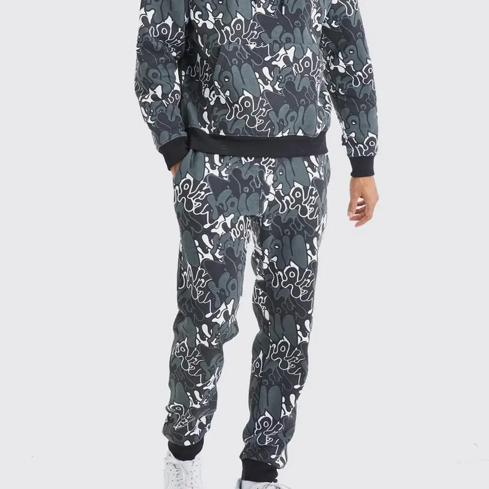 Ensemble deux pièces hautement personnalisable en Spandex/Polyester de haute qualité, comprenant un pantalon de survêtement évasé et un sweat à capuche, pour homme, hiver, survêtement de sport épais