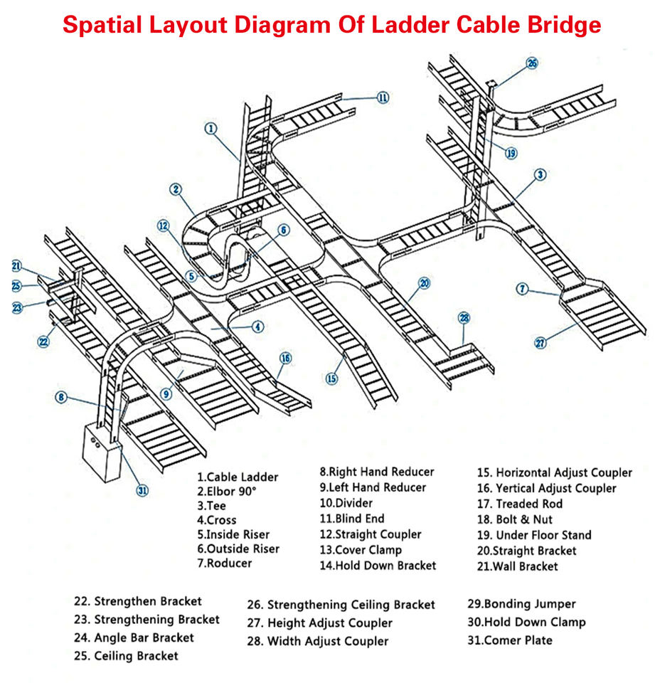 Construction industrielle hautement personnalisée Système de chemin de câbles en échelle galvanisé Capacité de chargement élevée Pose de câbles anti-corrosion