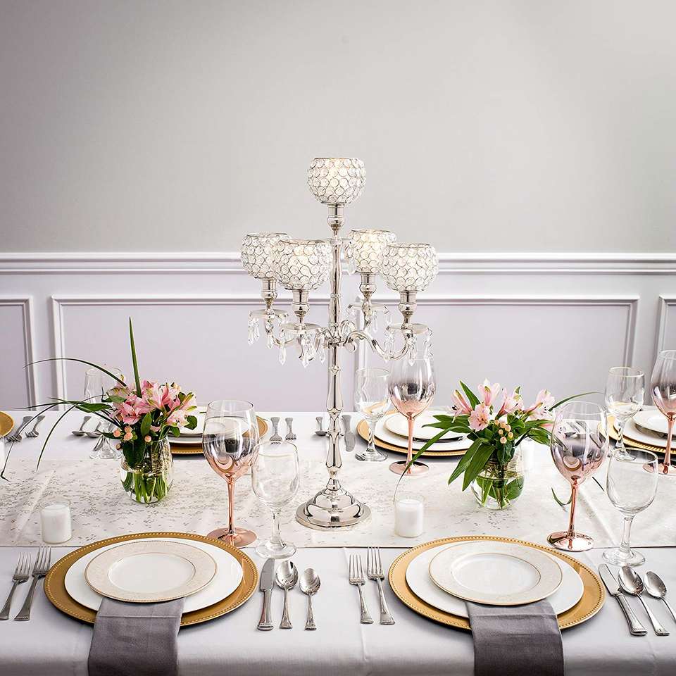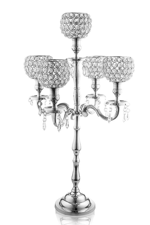 Bougeoir en métal à 5 bras très demandé Lanterne décorative en aluminium Menorah religieuse à 5 branches pour mariage à la maison