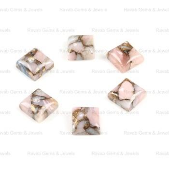 Product Name:Natural Pink Opal Copper Square Gemstone Cabochon