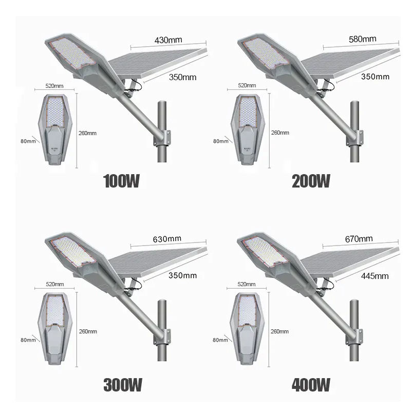 Lampe solaire de rue haute puissance en alliage d'aluminium moulé sous pression 200W Tout en un Lampe solaire de rue pour éclairage extérieur