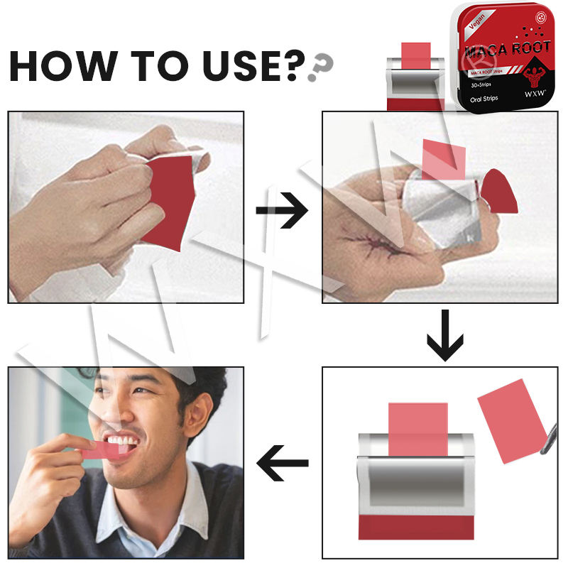 Bandes orales de racine de maca sans sucre de haute qualité à bas prix, film oral de maca à dissolution rapide, film oral mince pour la récupération d'énergie