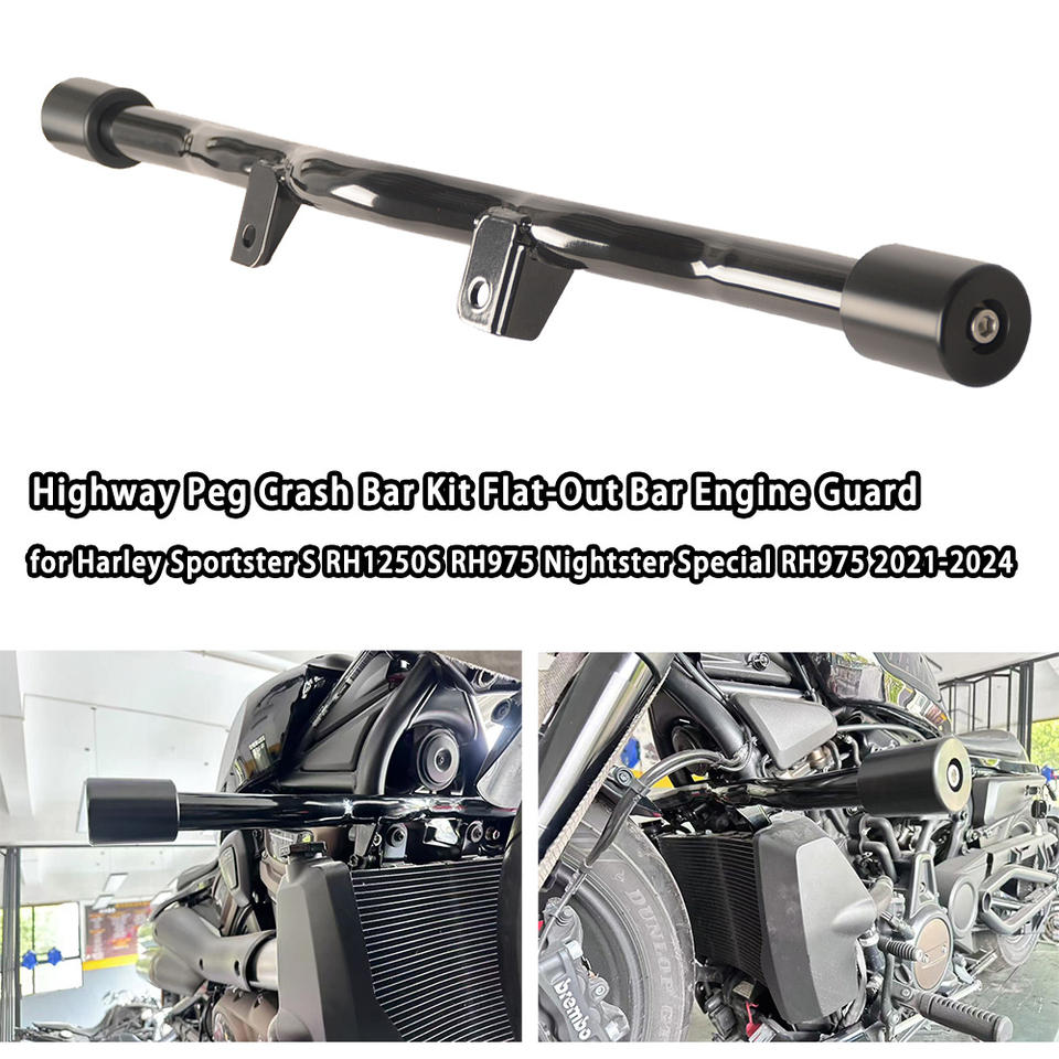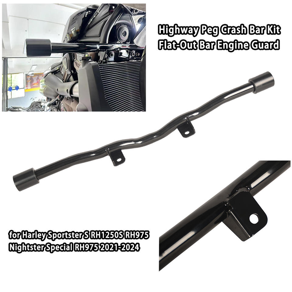 Highway Peg Crash Bar Kit Flat-Out Bar Engine Guard Noir pour Sportster S RH1250S RH975 Nightster Special RH975 2021-2024