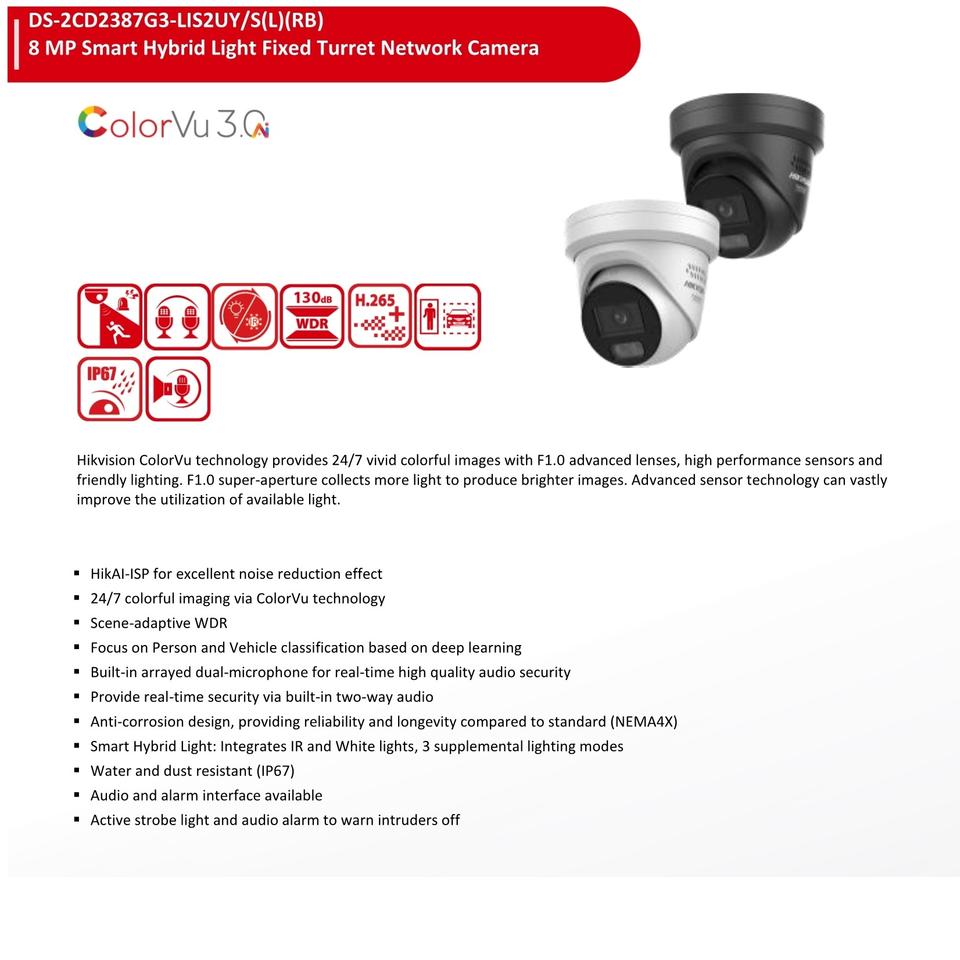 Kit de caméra de sécurité Hik Original DS-2CD2387G3-LIS2UY/SL 8MP Ai ColorVu3.0 Caméra DS-7608NXI-I2/8P/S(E) 8CH 8PoE 4K AcuSense NVR