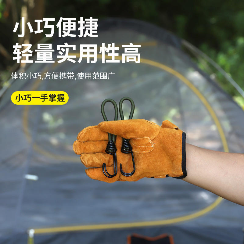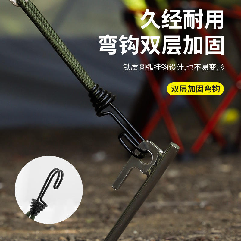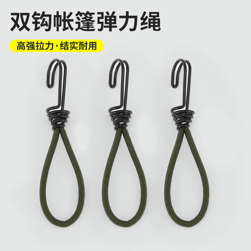 Corde élastique de randonnée 15 cm à double crochet, vert militaire, accessoires de tente Oxford, corde de traction pour camping en extérieur