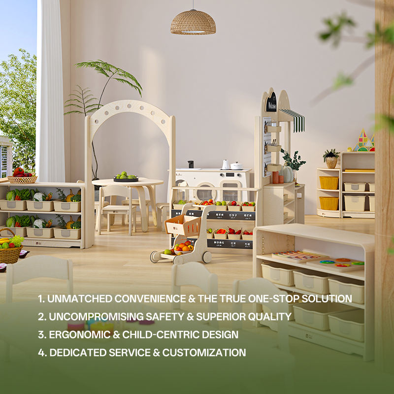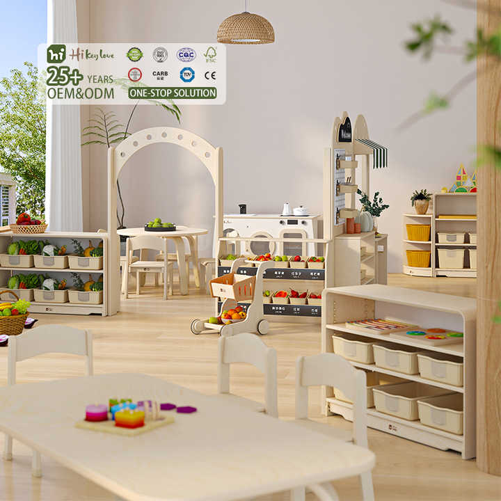 Hikeylove Natural Wooden Kids Grocery Shop Role Play Corner Setup Modern School & Living Room Furniture Set