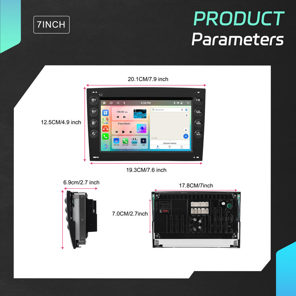 Autoradio Android Hikity 6+128/4+64G 7'' pour Renault Megane2 2002-2009, CarPlay sans fil, Android Auto, GPS WIFI/GPS OEM