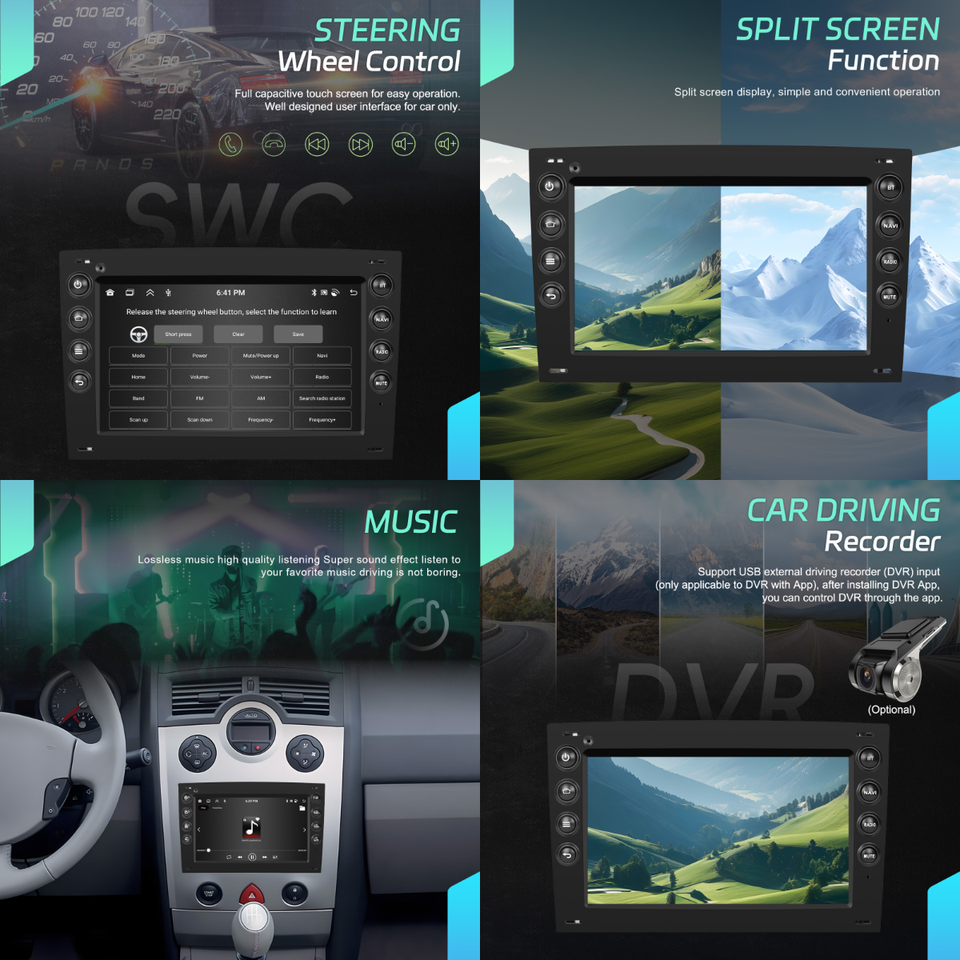 SANS MAINS, Stéréo, CarPlay, Android auto, Image dans l'image, Écran partagé, Gestionnaire de fichiers, Volant de voiture de Contrôle, carte