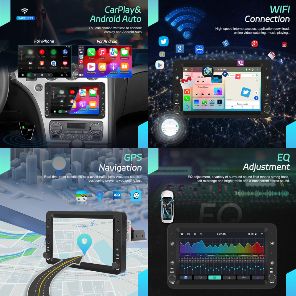 SANS MAINS, Stéréo, CarPlay, Android auto, Image dans l'image, Écran partagé, Gestionnaire de fichiers, Volant de voiture de Contrôle, carte