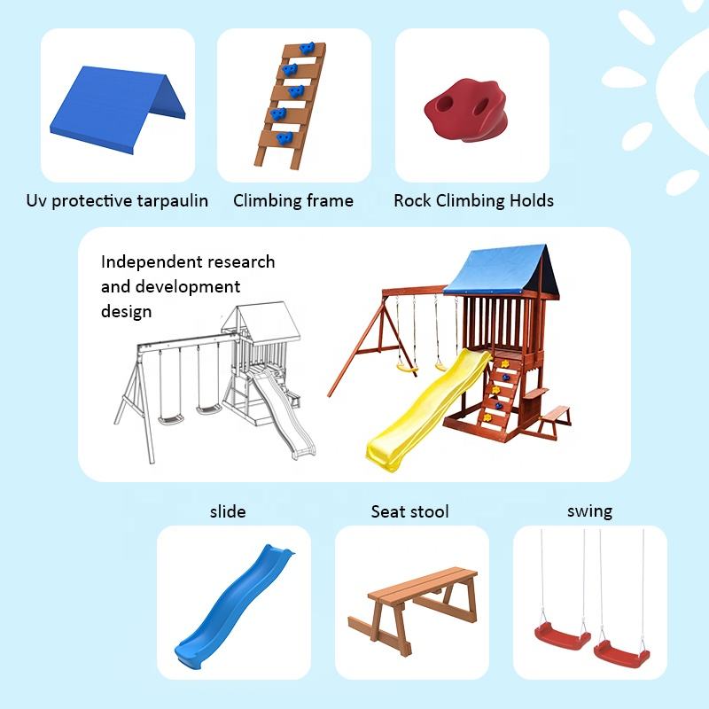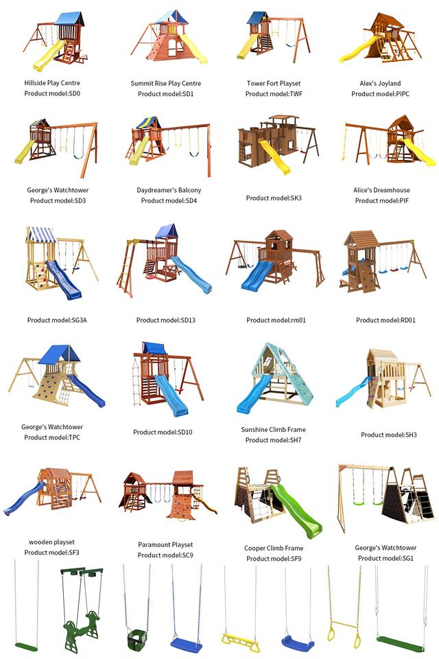 Centre de jeu Hillside enfants équipement de terrain de jeu d'arrière-cour commerciale ensemble de balançoire extérieure en bois pour les enfants
