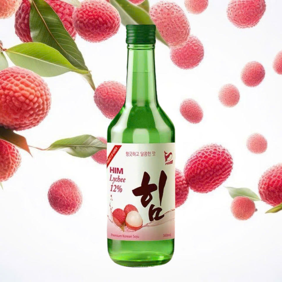 Him Lychee Soju 360ml Bouteille en verre rafraîchissante Unique Sweet Fresh Lychee Saveurs traditionnelles de Soju avec des herbes à l'alcool primaire