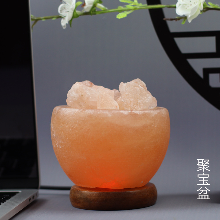 Lampe de sel USB en pierre de l'Himalaya, sculptée à la main, purificateur, veilleuse, lampe en cristal de roche, base en bois, colorée, naturelle, appartement, CE