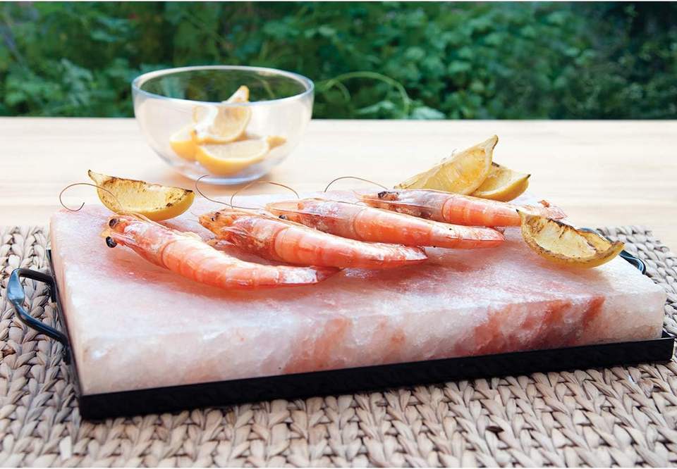 Ensemble d'assiettes et de supports de sel rose de l'Himalaya 12 "x 8" x 1.5 ", blocs de dalle de cuisson au sel rond de l'Himalaya avec base en métal