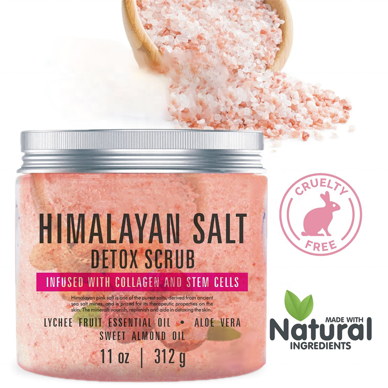 Gommage corporel au sel de l'himalaya avec cellules de tige de collagène gommage au sel exfoliant naturel pour l'acné, la Cellulite, les cicatrices de peau morte et les rides